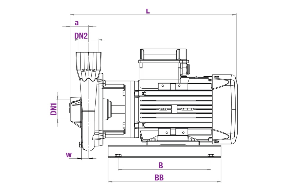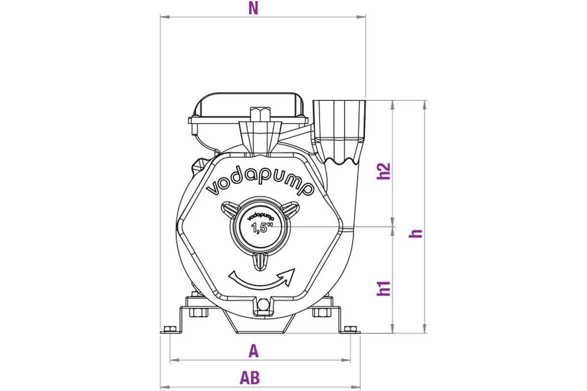 | Однофазный | Трёхфазный | Л.с. | кВт | Всасывание DN1 | Подача DN2 | L | N | h1 | h2 | h | a | w | A | AB | B | BB | 1~ | 3~ |
